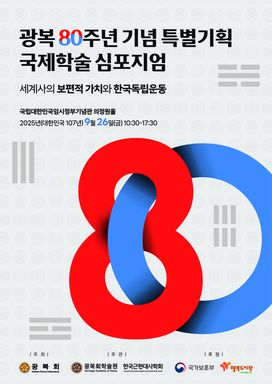 광복 80주년을 맞아 한국독립운동의 세계사적 위상을 조명하는 국제학술 심포지엄이 열린다.